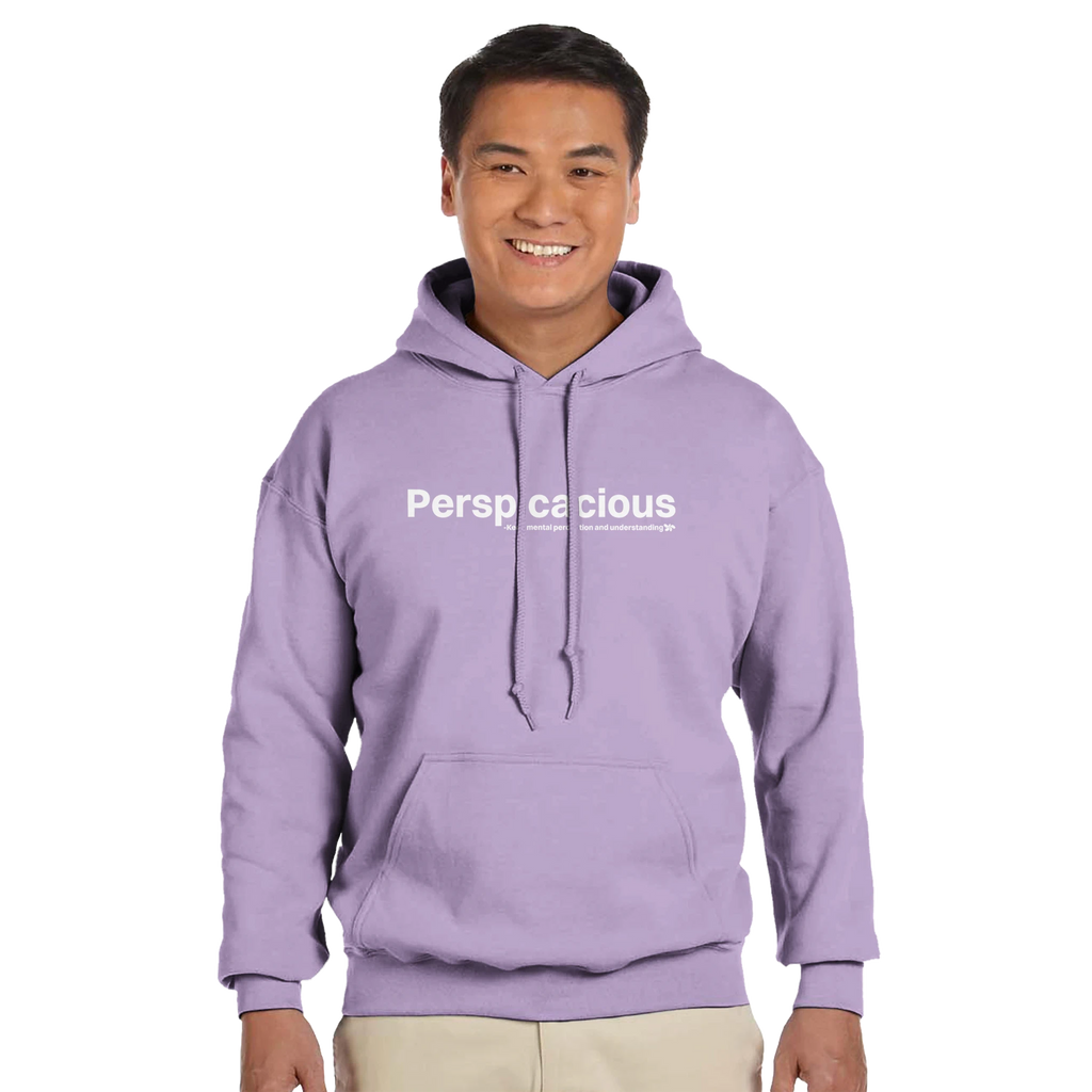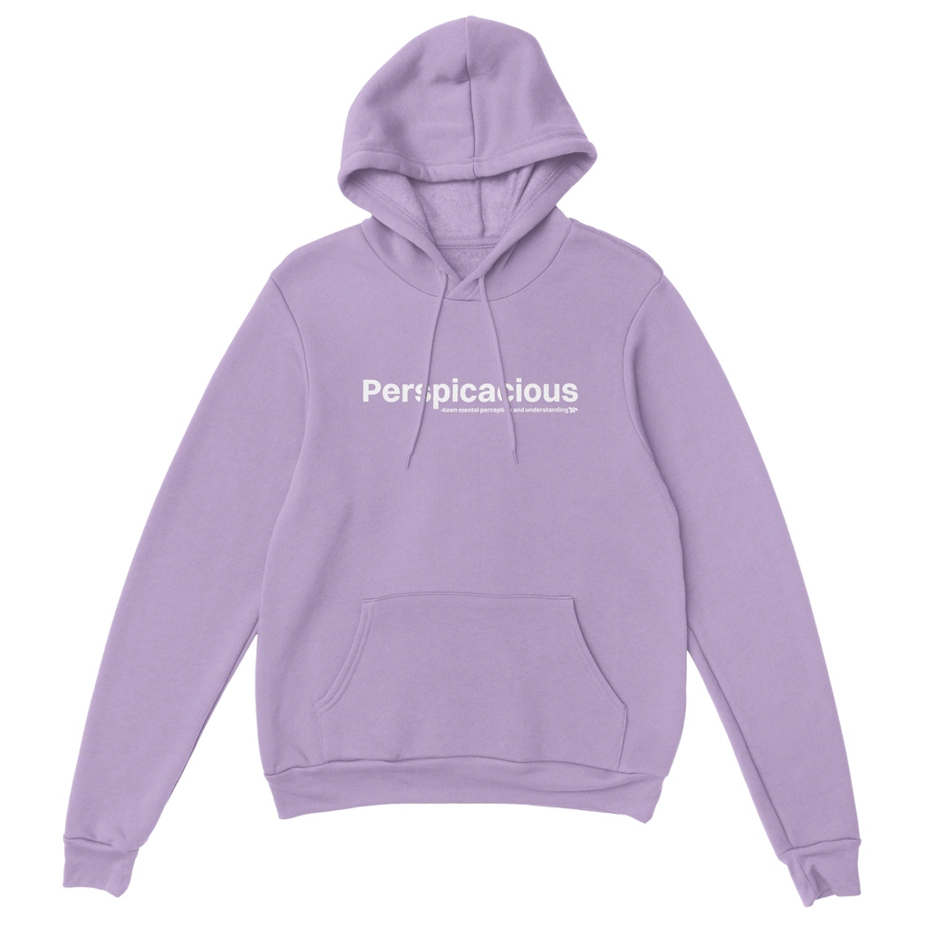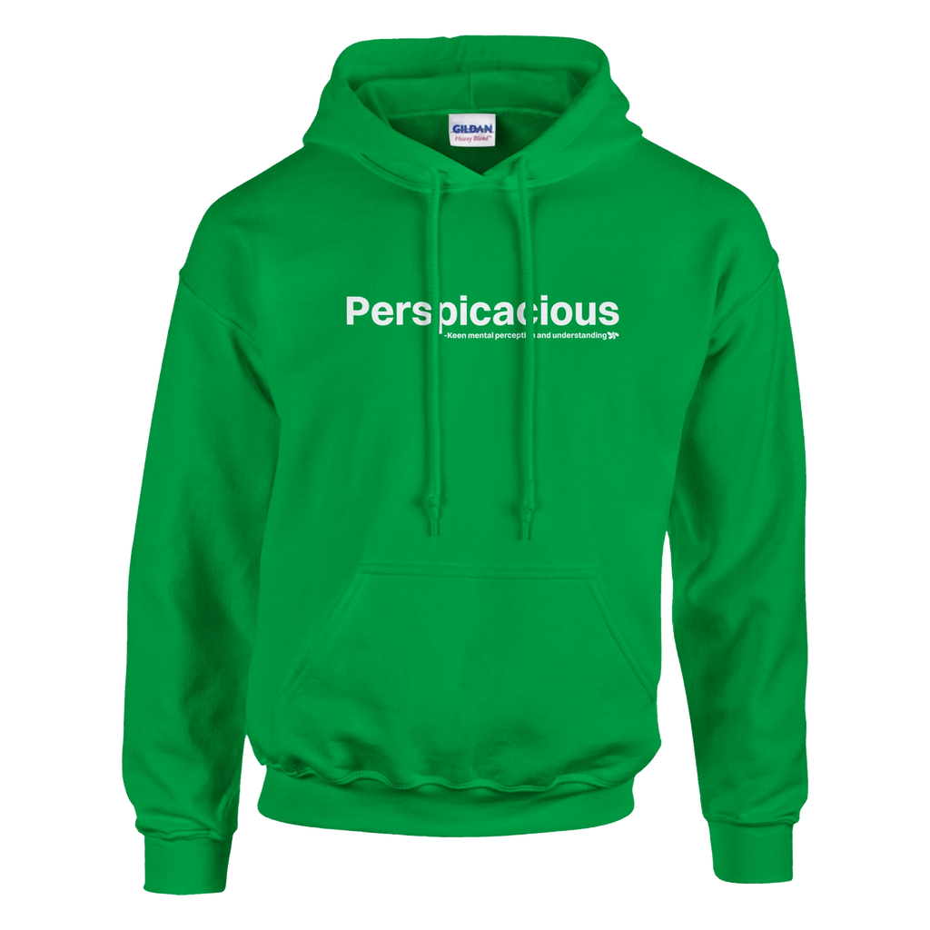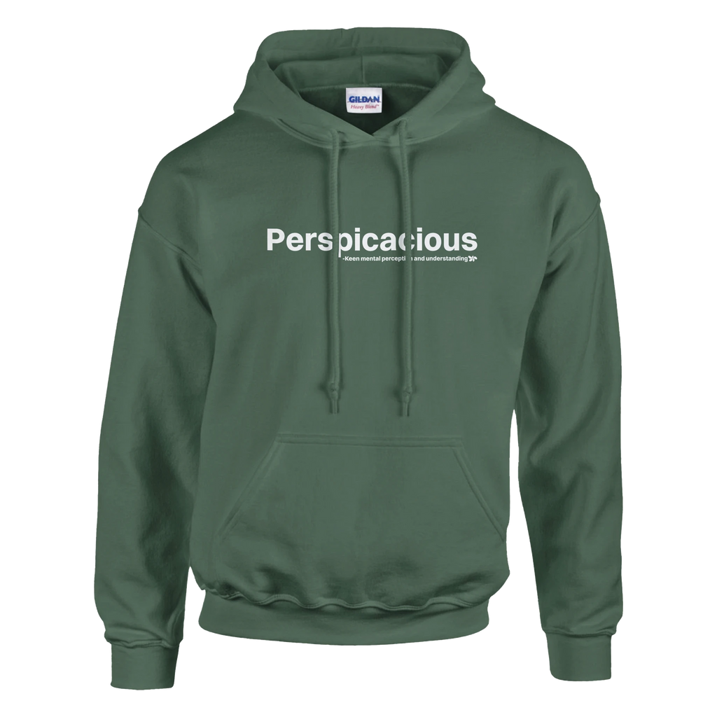A heavy blend Perspicacious hoodie. Crafted from a soft blend of 50% cotton and 50% polyester.