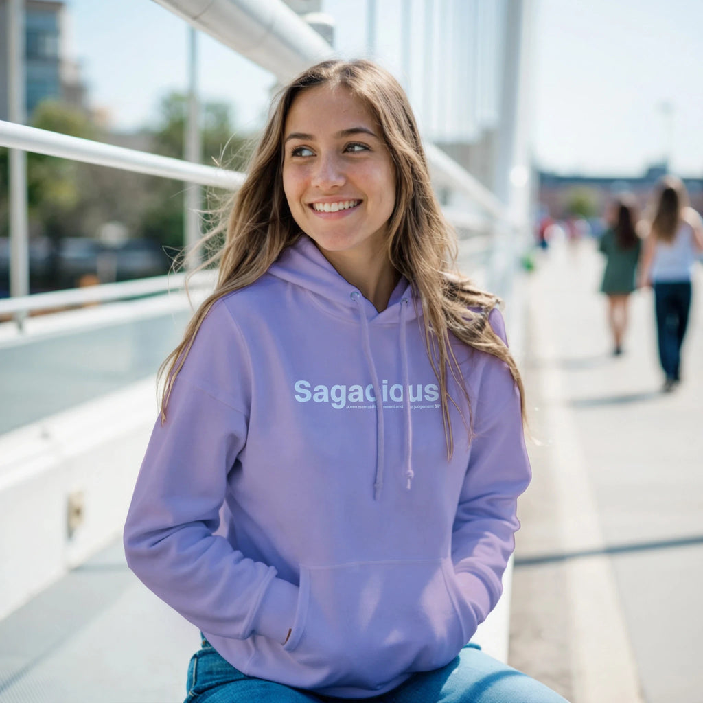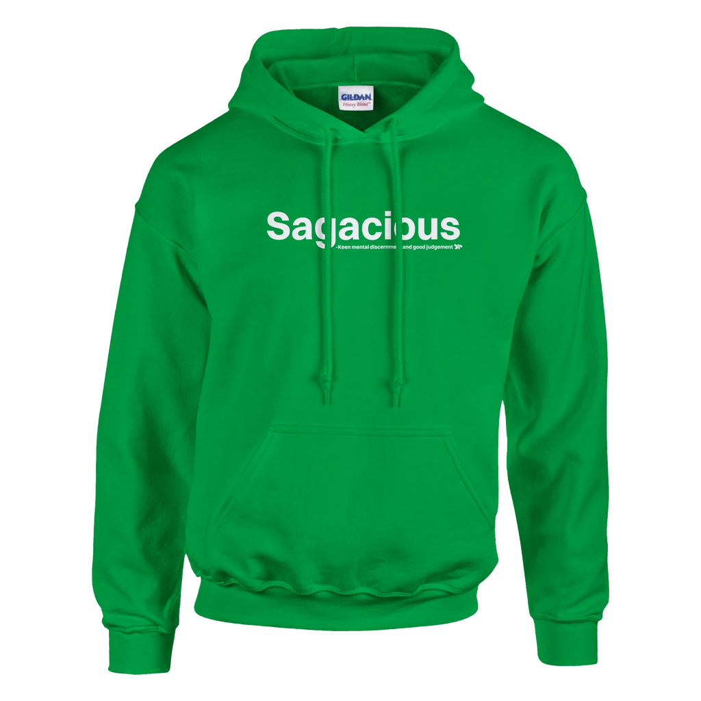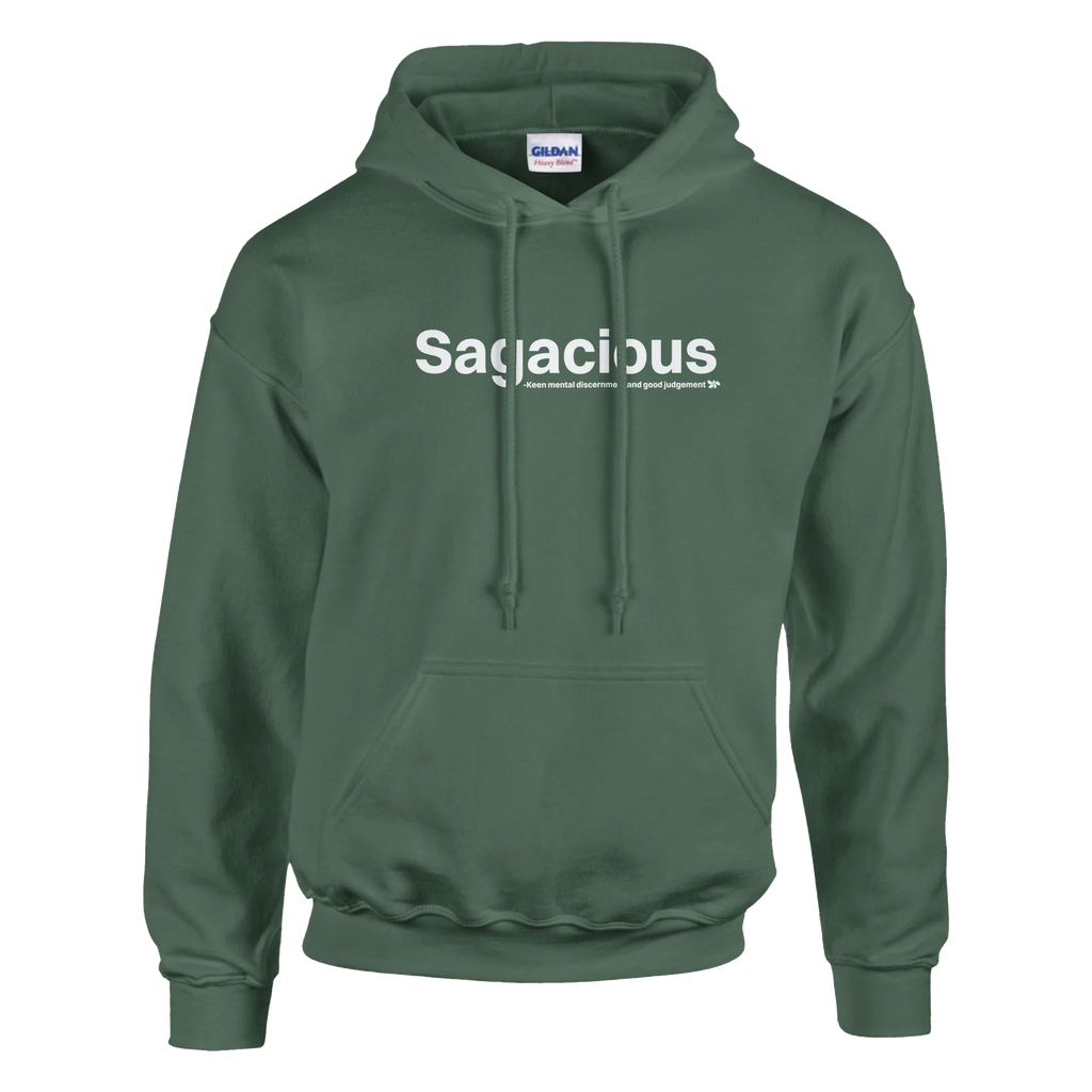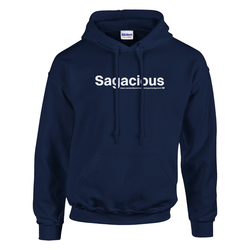 A heavy blend Sagacious hoodie. Crafted from a soft blend of 50% cotton and 50% polyester.